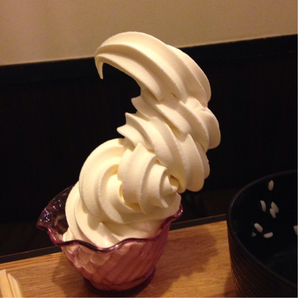 ・デザートも食べ放題だったんですが、連れがアーティスティックソフトクリームを作りました。