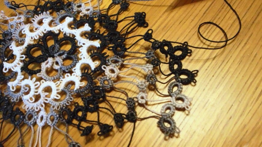 タティングの方は、黒のグラデーションレース糸を使っているんですが、何というか……