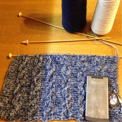棒針編み 縄編み進捗
