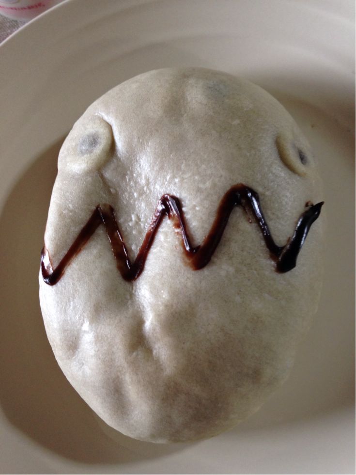 本当は卵にヒビが入ったイメージのパンらしいけど私には顔にしか見えない(笑)