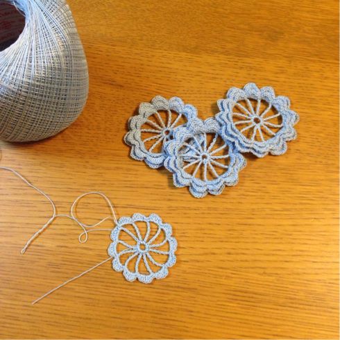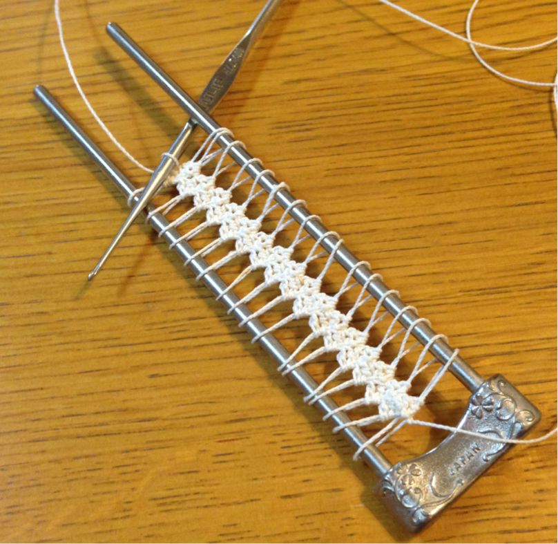 レース糸でリボンを編む。