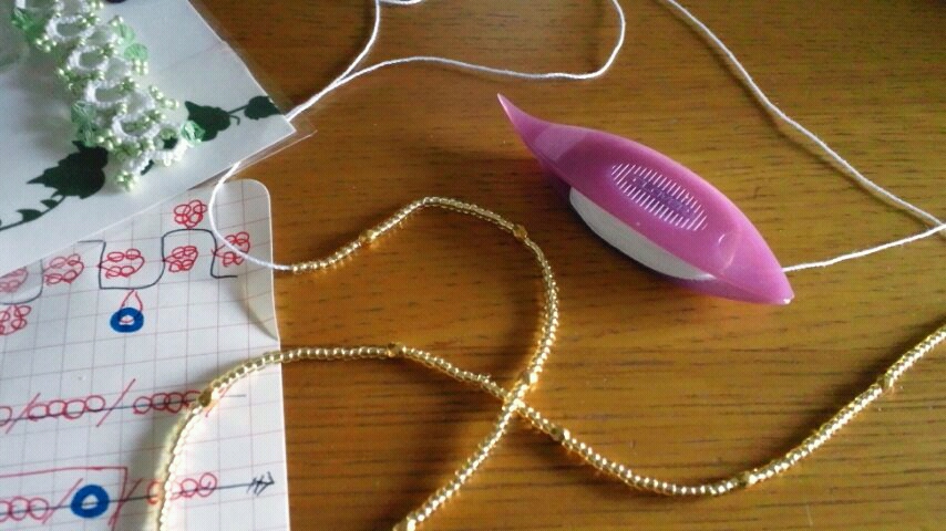 タティングにビーズを入れ込んだ物を編もう!と、思い立ち作業開始。