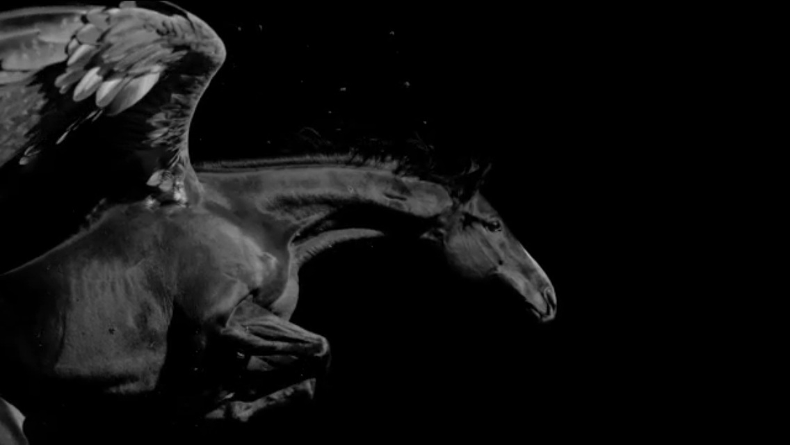 その広告に黒いナイスな馬が居て、思わず見にいくという。