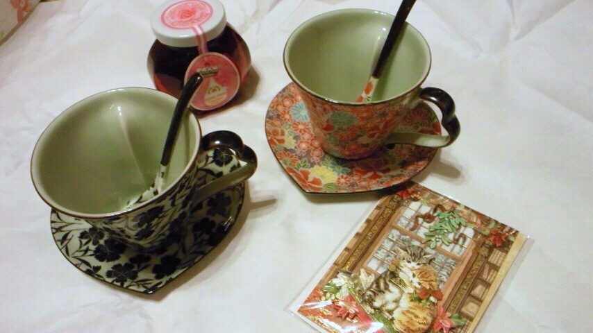 母とお揃いでカップと、バラのジャムとクリスマスカードをかっちゃいました。
