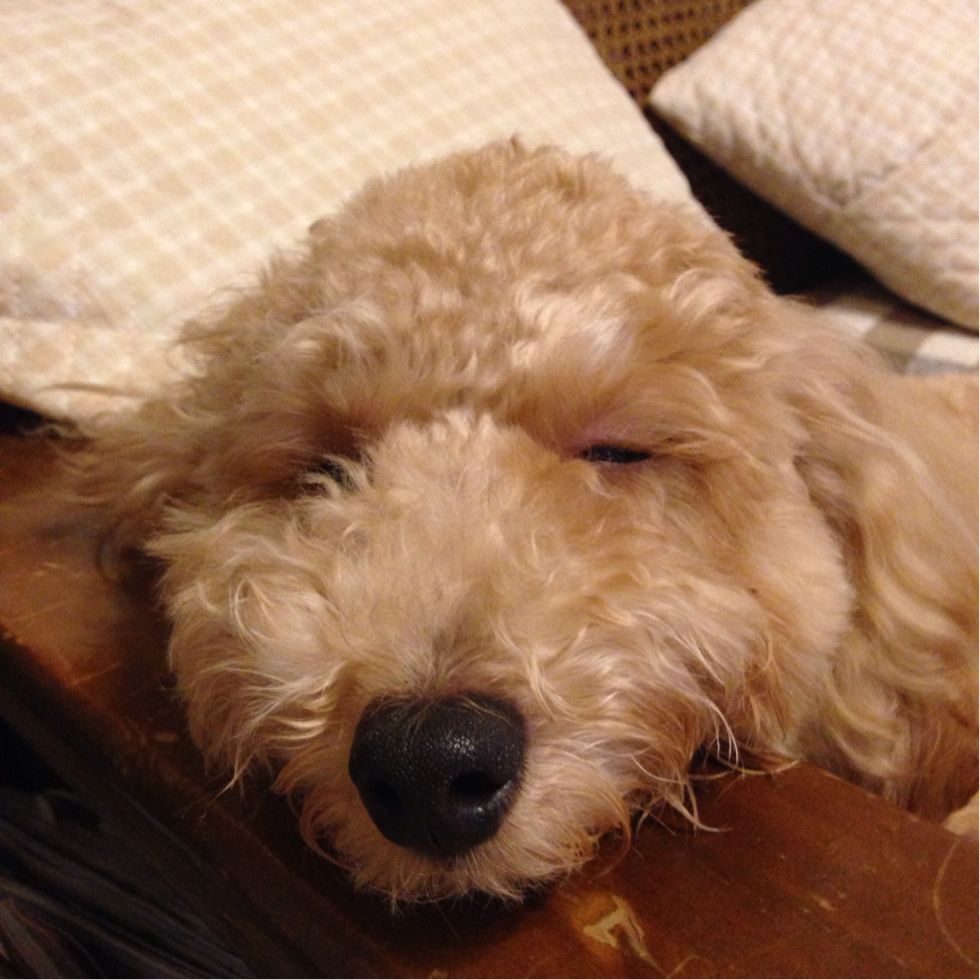 散歩後は疲れて静かに変顔。