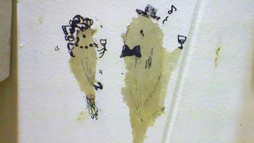 今日の店のトイレ、壁紙が剥がれてるところに落書きしてあったんですがうまい(笑)