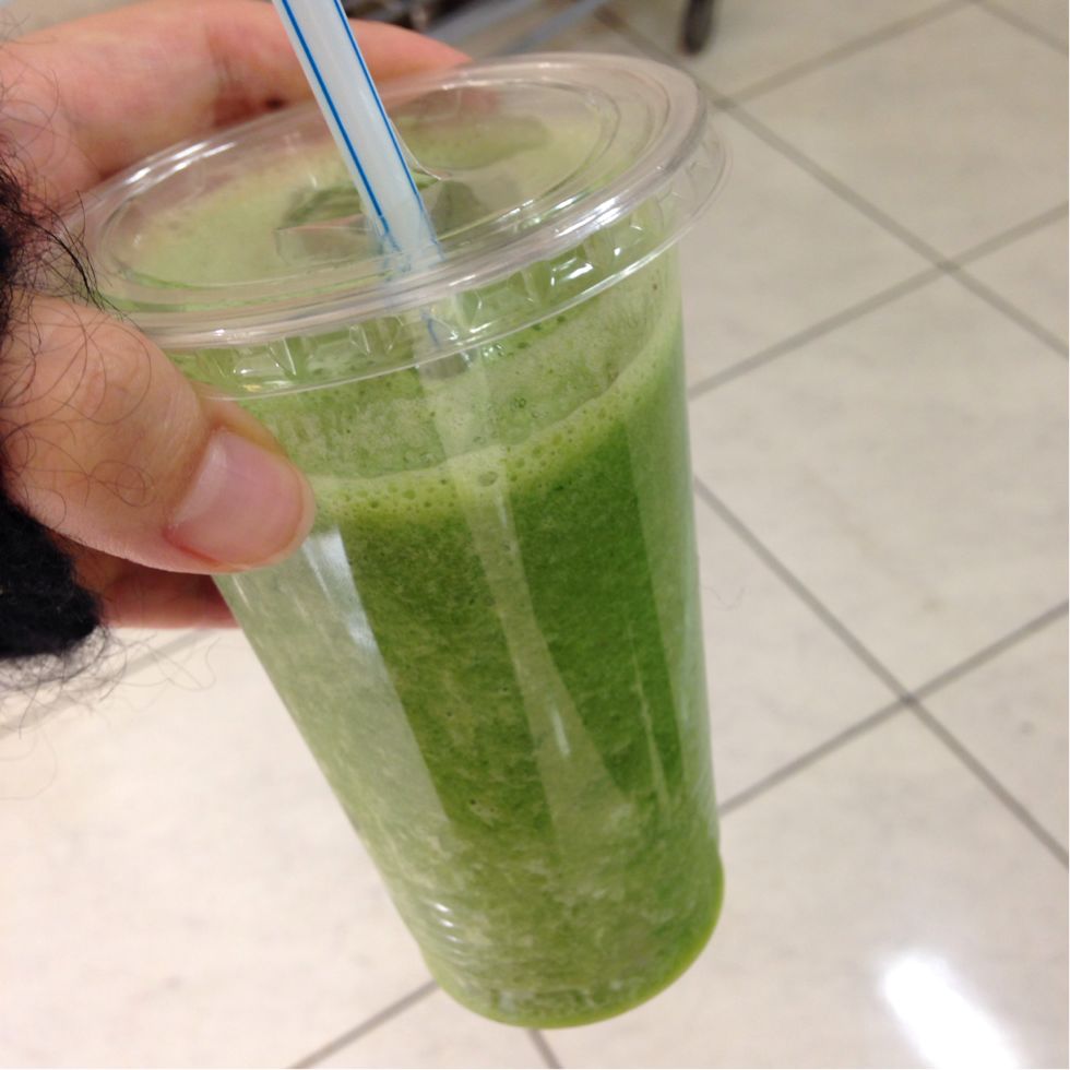 上司に小松菜&フルーツジュースをご馳走してもらいました。