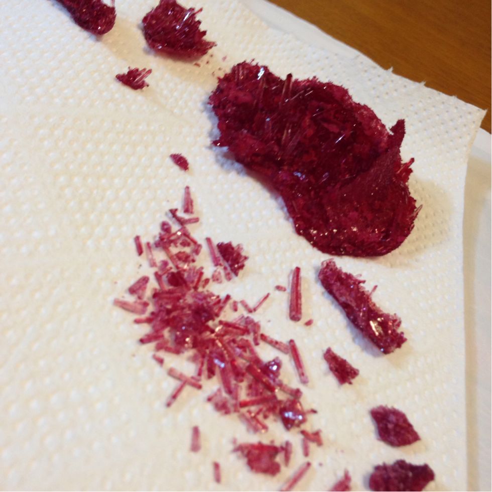 そして、瓶から結晶を取る作業中、液体を紙コップに逃がしていたんですが、、、